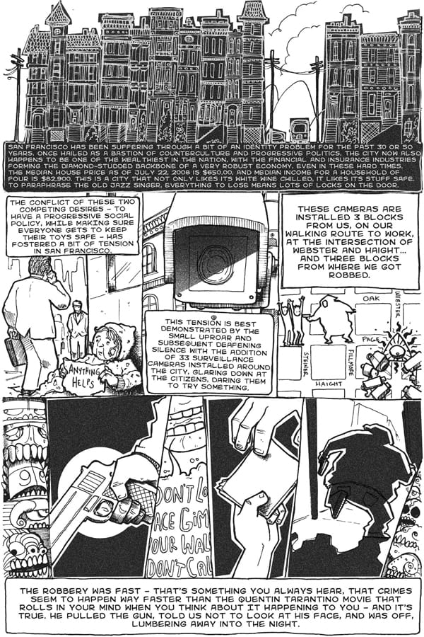 When Thomas approached me about contributing to their issue about Surveillance, a true story immediately came to mind: when my wife and I were robbed at gunpoint in San Francisco, all under the watchful eyes of the public safety security cameras.